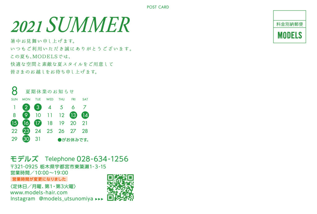 この夏も、MODELSでは、快適な空間と素敵なヘアスタイルをご用意して
